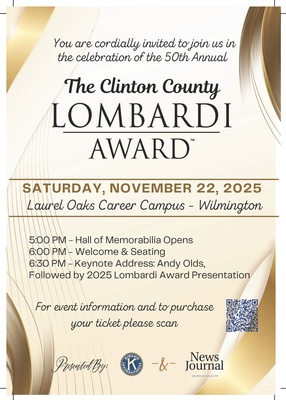 You are cordially invited to join us in the celebration of the 50th Annual Clinton County Lombardi Award, Saturday, November 22nd, 2025 at the Laurel Oaks Career Campus - Wilmington.